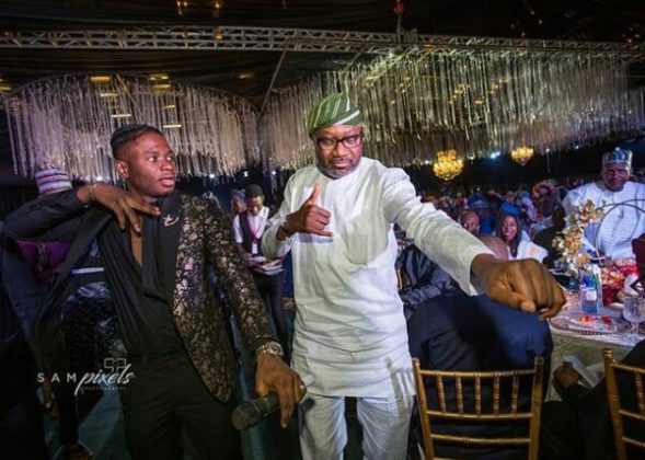 Oil mogul and billionaire, Femi Otedola was yesterday spotted dancing the 'shaku shaku' dance at the wedding of Aliko Dangote's daughter in Lagos yesterday.