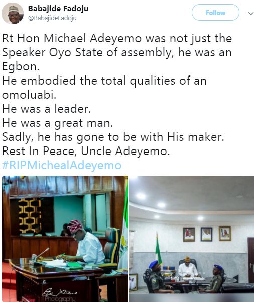The speaker of the Oyo State House of Assembly, has been declared dead, a development which has caused some stir.