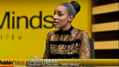 The daughter of the late Chief MKO Abiola, has blasted Senator Dino Melaye, over his criticism of the GCFR award bestowed on her father by President Buhari.