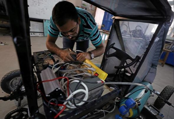 “The operational cost of the vehicle... will be almost nothing. You are basically using compressed air. You are not paying for fuel and also you do not need cooling,” said Mahmoud Yasser, a student who helped design it.
