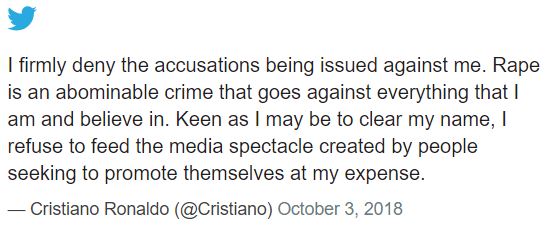 Ronaldo, 33, earlier "firmly" denied assaulting Kathryn Mayorga at a Las Vegas hotel in 2009.