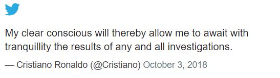 In a separate development, Juventus - the Italian club Ronaldo joined from Real Madrid for £99.2m in July - came out in defence of its player.