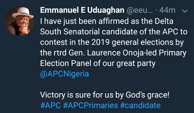 Emmanuel Uduaghan has clinched the senatorial ticket under the platform of the ruling All Progressives Congress.