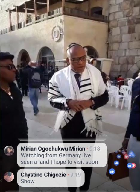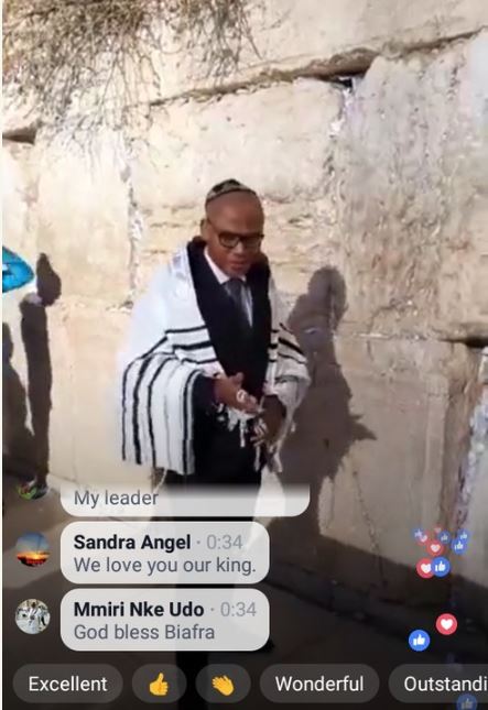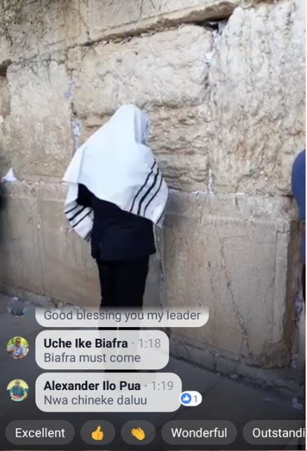 Kanu was seen at the Wailing Wall in the holy land praying fervently. His second appearance was televised on social media with his supporters from the Igbo Nation hailing him.
