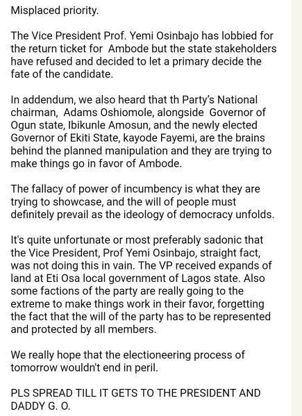 Vice President Yemi Osinbajo and the leadership of the APC at the national level has been accused of making moves to favour Ambode in the Lagos APC primaries.