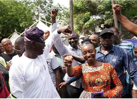 The News Agency of Nigeria (NAN) reports that Mr Sanwo-Olu arrived the polling unit at 10.38 a.m., accompanied by his wife, Ibijoke Sanwo-Olu.