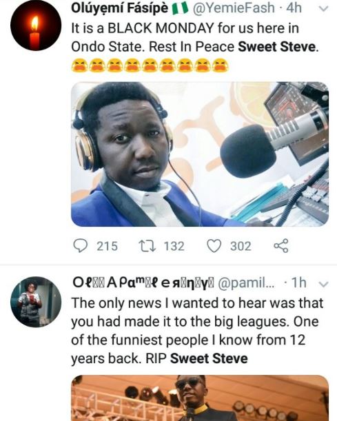 later passed on.Everyone who has met him took to Twitter to write about their encounter with him and how he was kind, humble, and always ready to help everyone, including up and coming talents. He was based in Ondo State. |