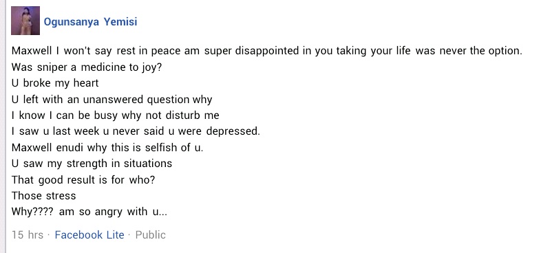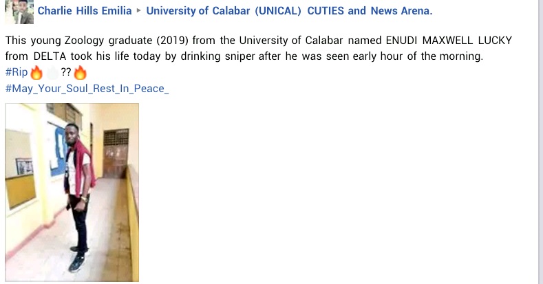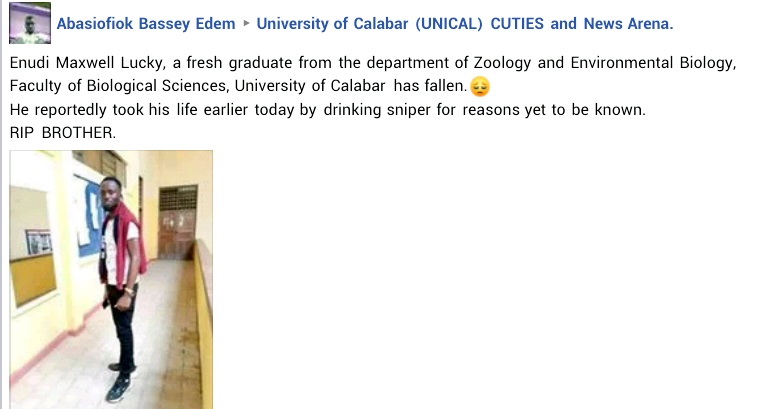 A Nigerian man has ended it all after drinking poisonous pesticide probably as a result of depression.