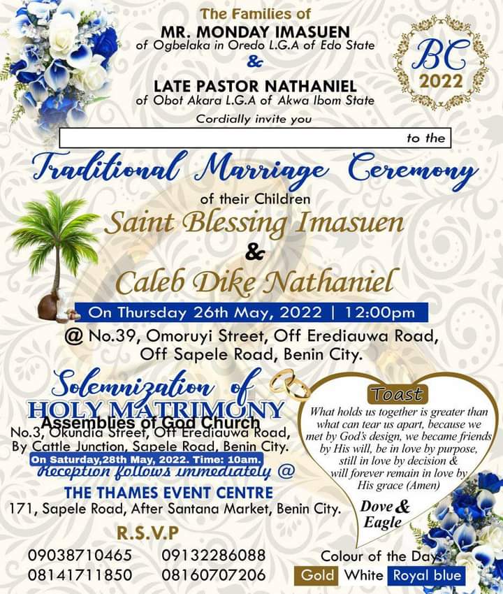 The young pastor identified as Nathaniel D. Caleb said he is set to wed his fiancée in Edo state.