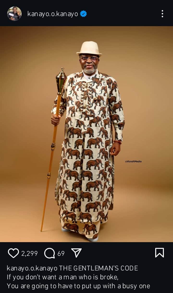 The actor revealed that most rich men are busy as such might not provide the romantic display ladies desire.